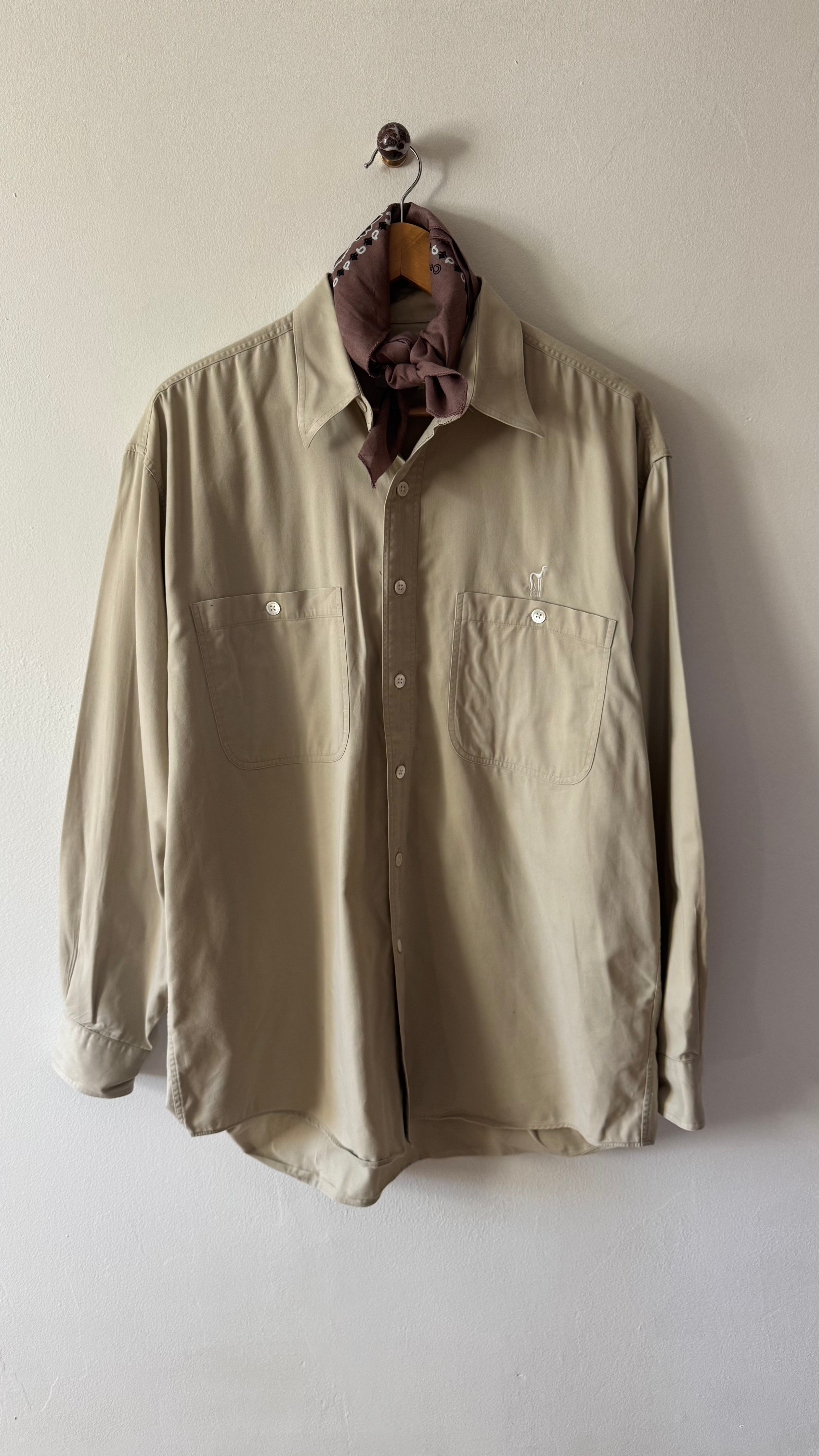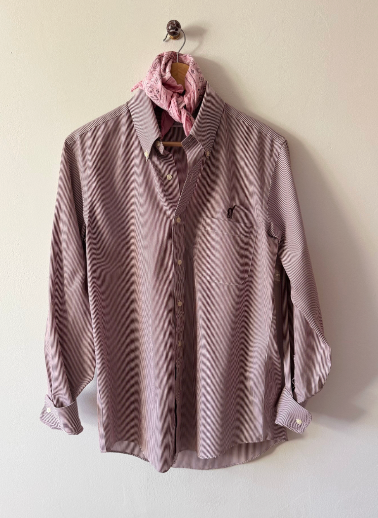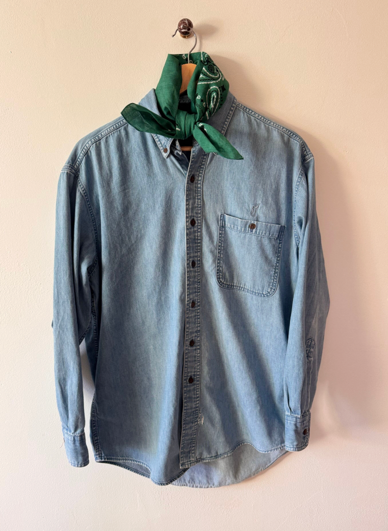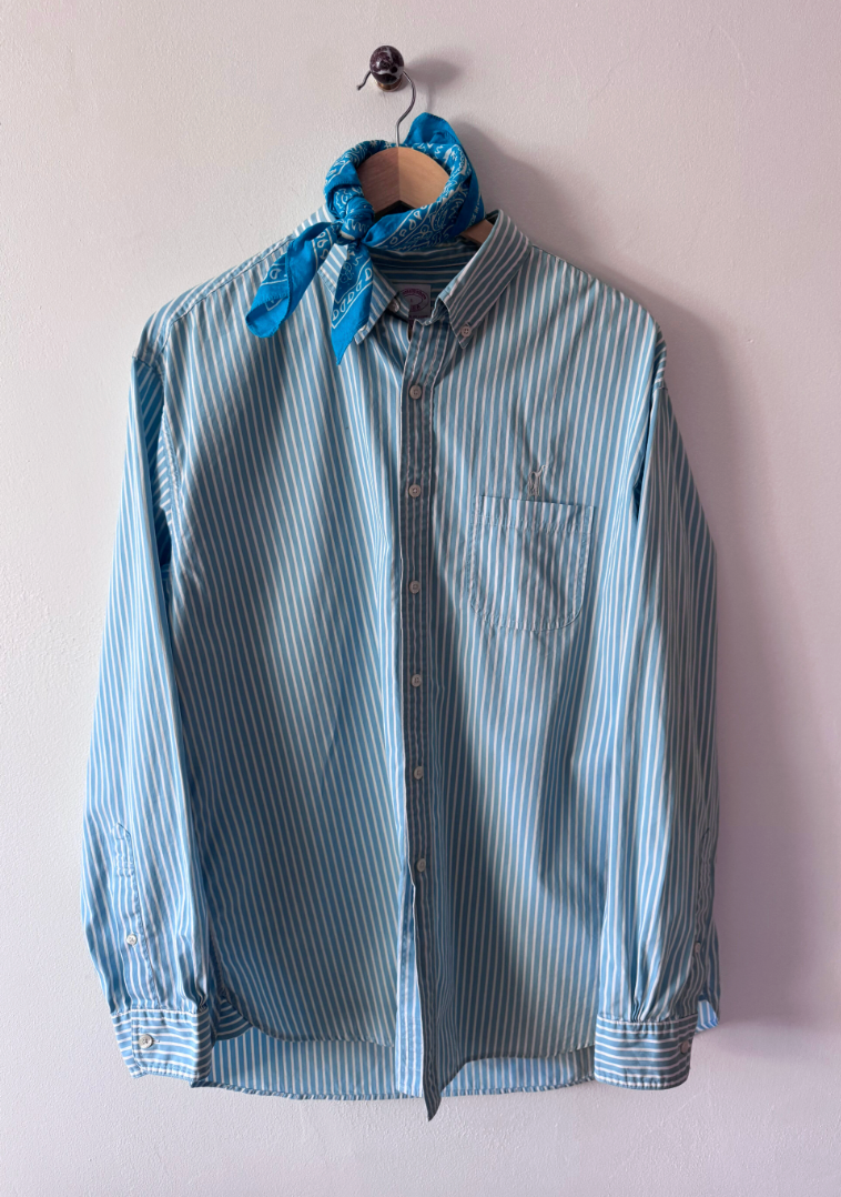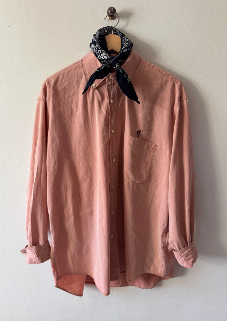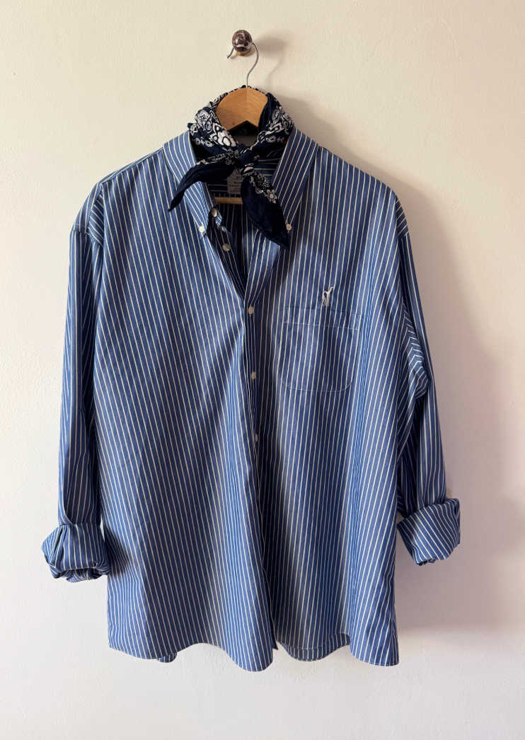 Vintage men's button downs, each shirt is one-of-one — sourced for its perfectly worn oversized fit. We added our chest and back embroidery as a way of saying "we were here". Each piece is meant to live a long life, worn, loved, repaired, passed along.