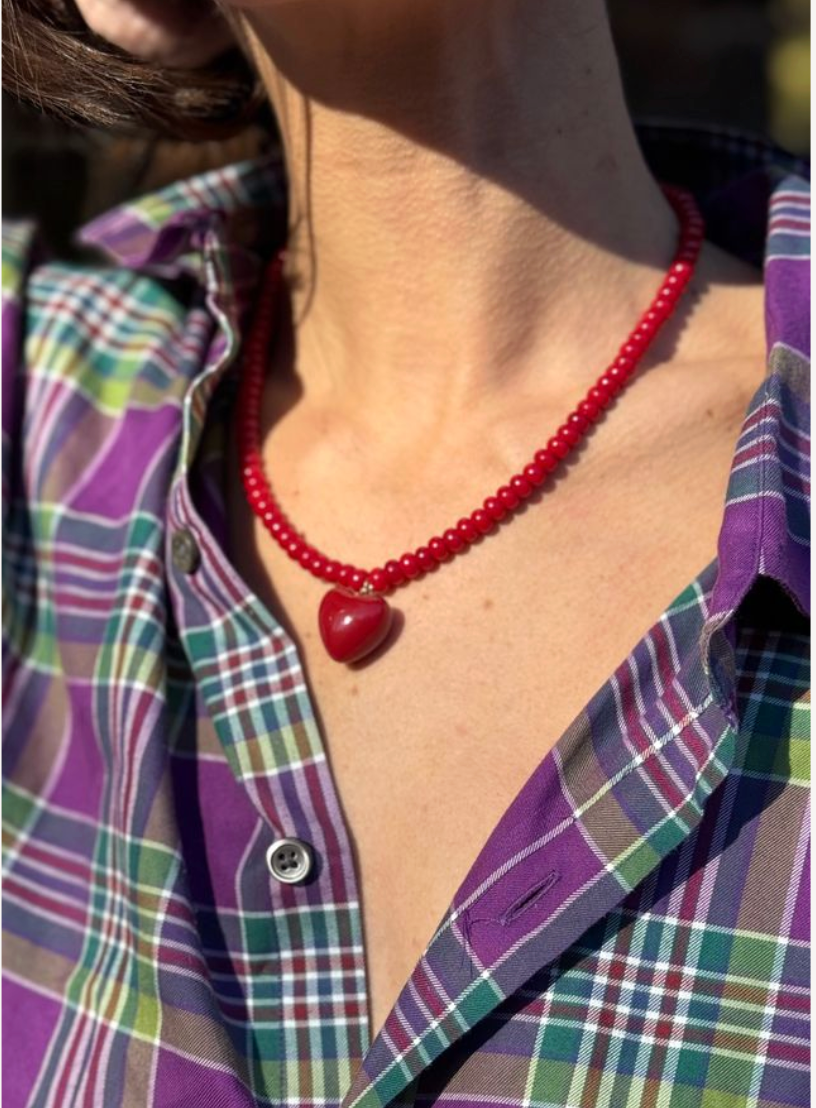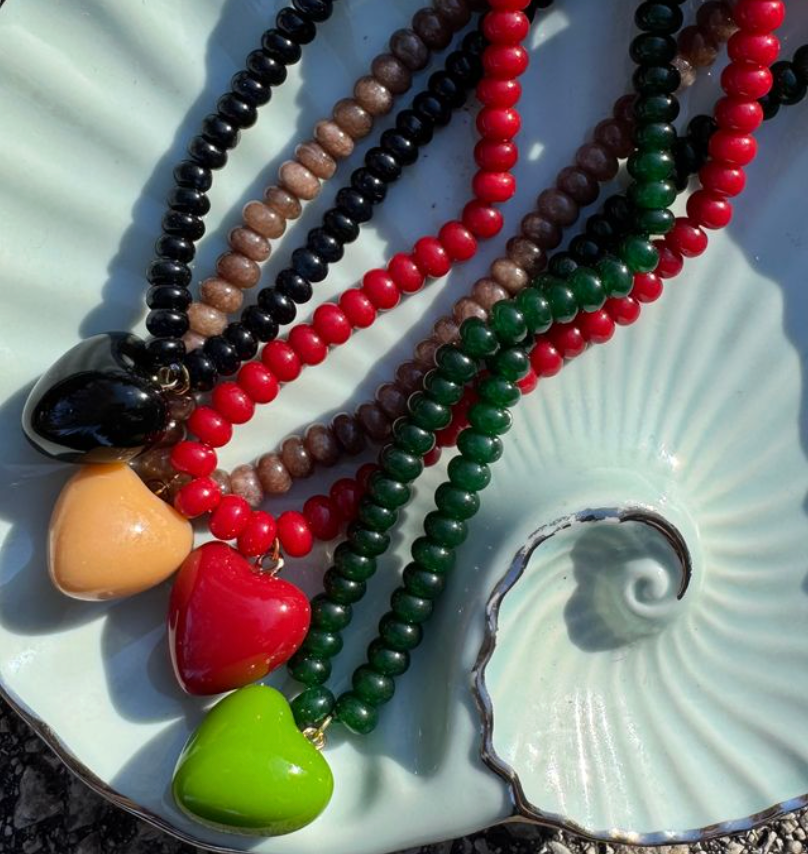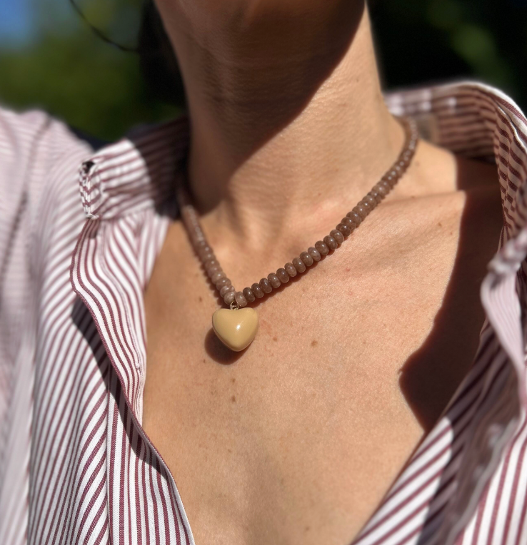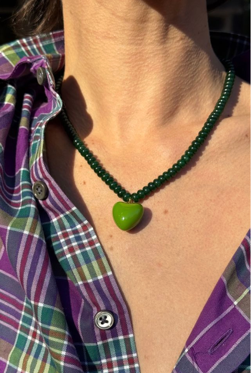 Inspired by one of Caroline's favorite treasures, this heart pendant necklace brings a playful twist to any outfit. With vibrant stone beads and an easy on and off 14k gold filled magnetic clasp, it combines charm and convenience. Perfect for adding a touch of whimsy to your look.