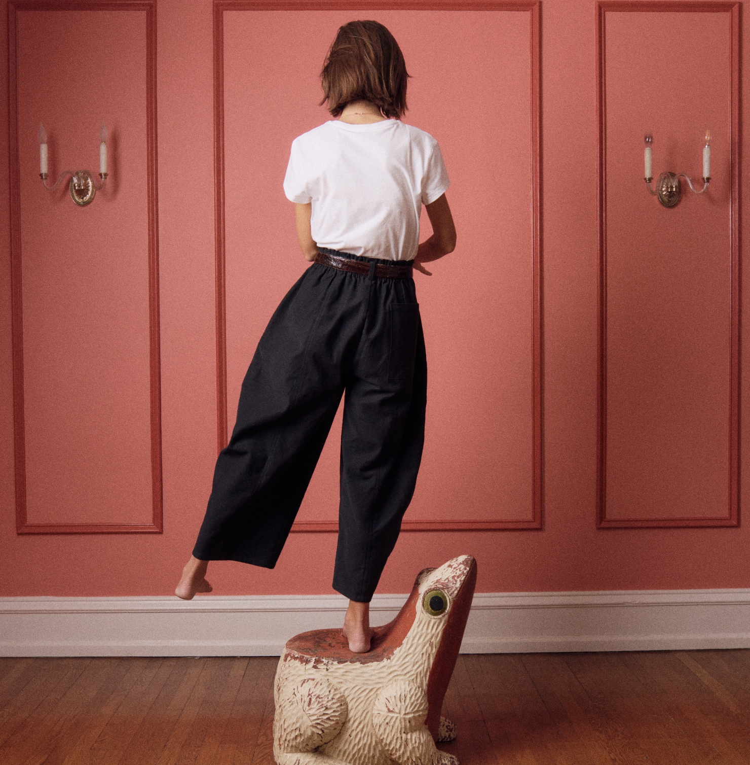 At Bill, we embrace the art of a sculptural silhouette. Our pants deliver on the bold barrel drama. Crafted in a heavy cotton twill these babies beautifully maintain their rounded shape. With a flexible gathered elastic waist, these pants can be a no brainer any time any day. Need a polished look? We added belt loops for your favorite accessory. Plus, three deep roomy pockets for all of your bits and bobs.